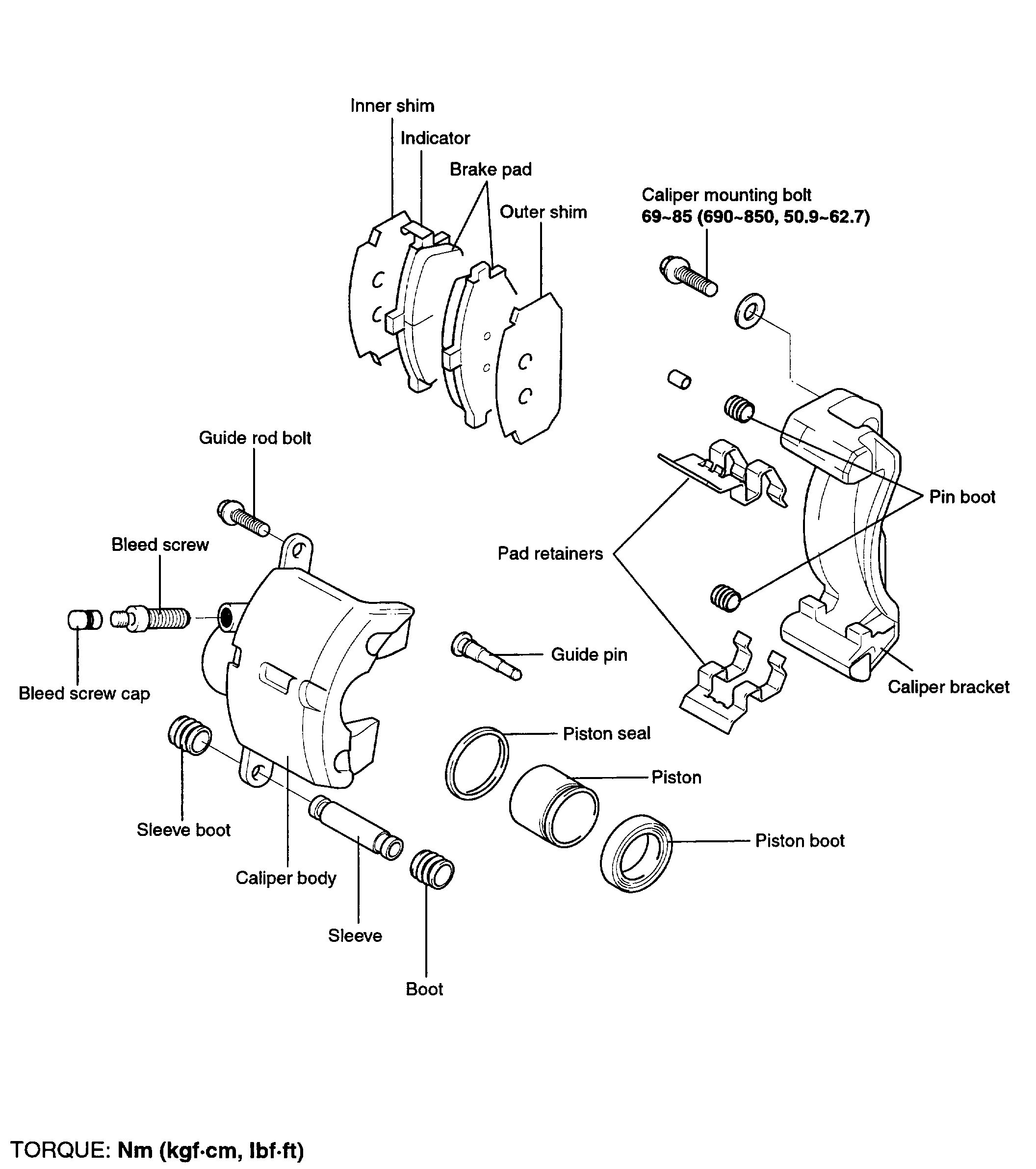 CAUTION: Be careful so that the disc or pad isn't contaminated by grease.