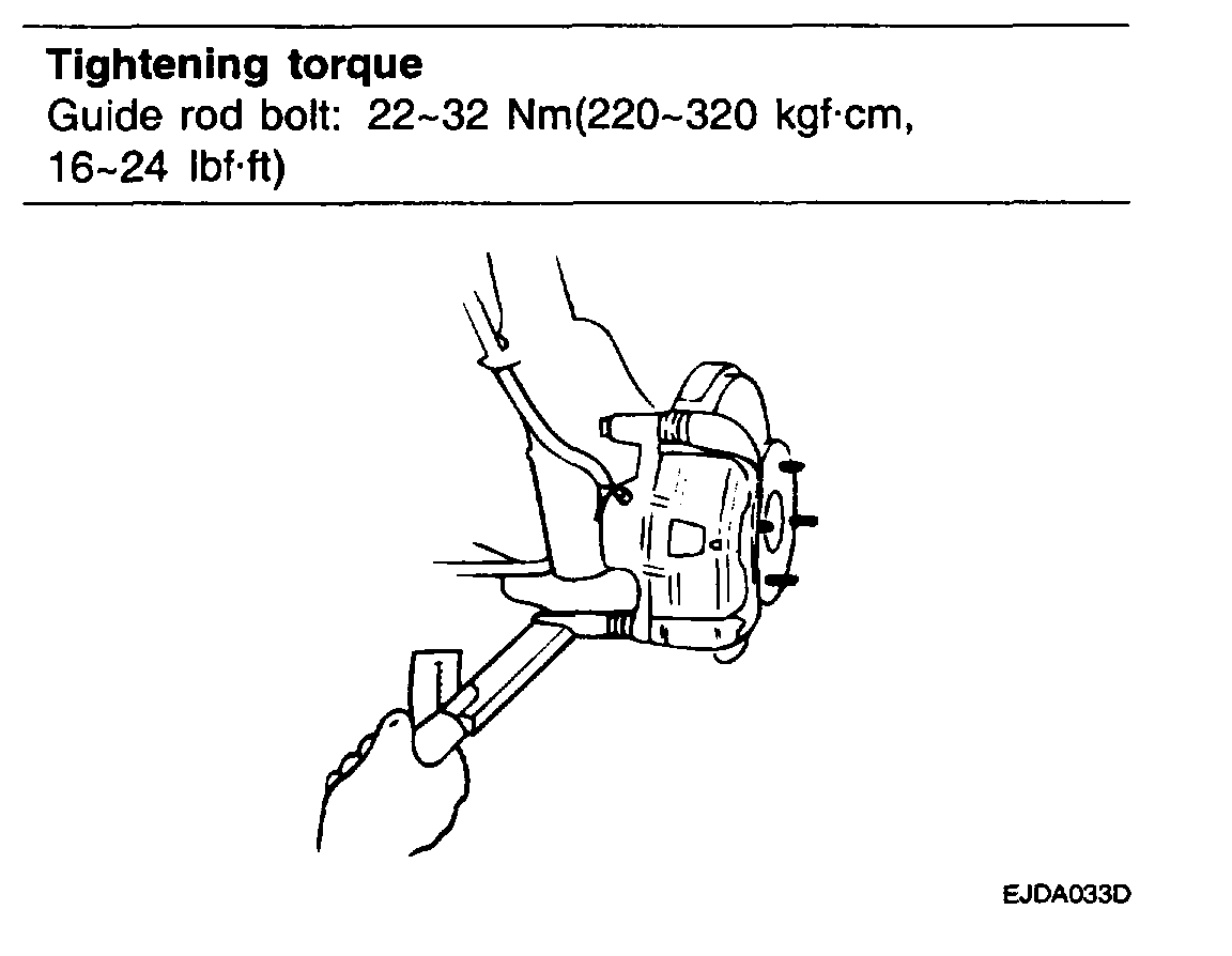 Guide rod bolt: 22 - 32 Nm (220 - 320 kgf-cm, 16 - 24 ft. Lbs.)