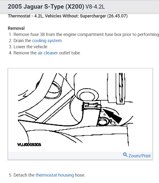 Video on how to change the thermostat assembly housing on a 4.2 2005 s type jaguar we have a crack on the thermostat housing assembly that has been confirmed as the problem by our local Jag dealership.