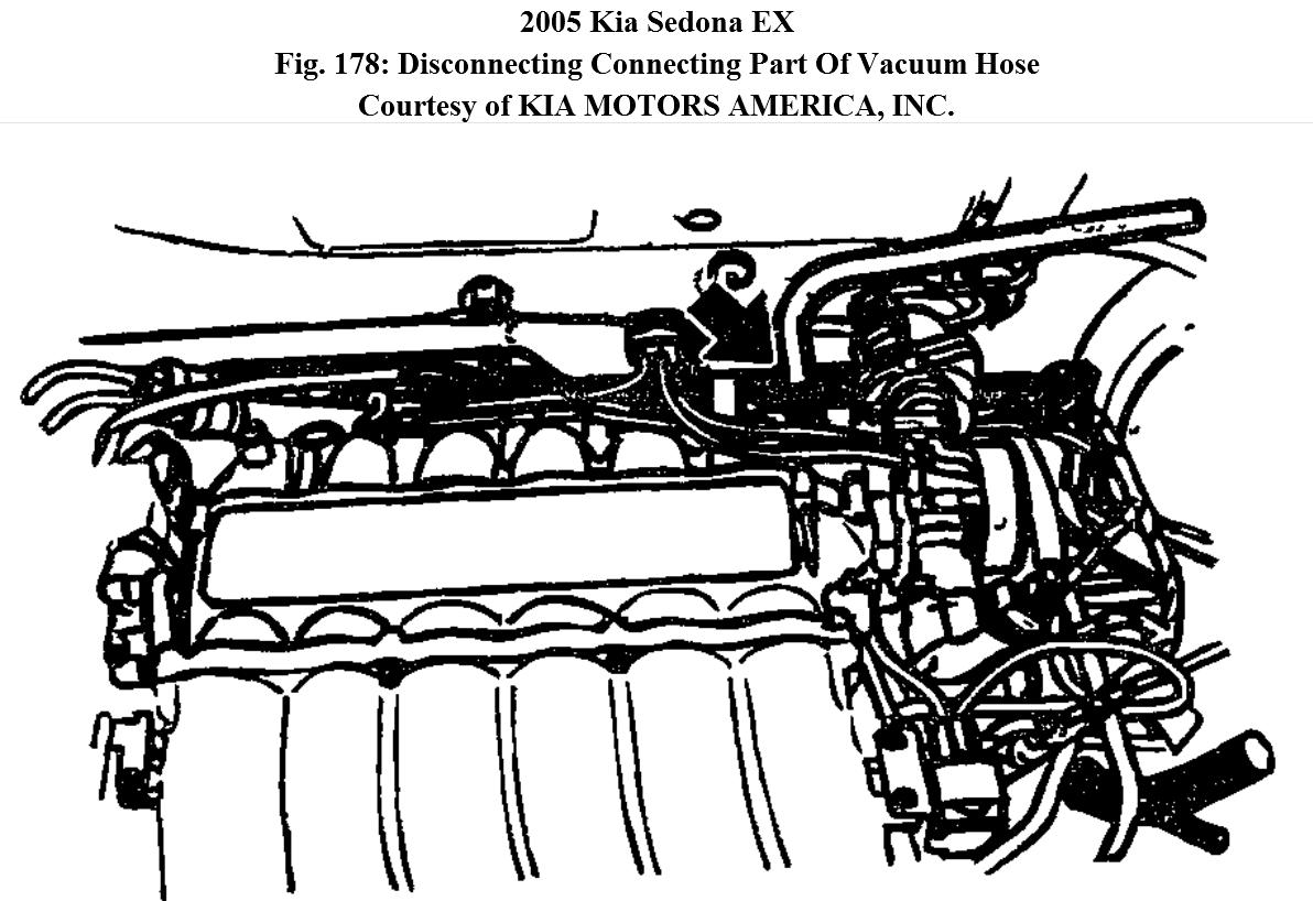 1. Detach the P.C.V. Hose and brake booster vacuum hose.