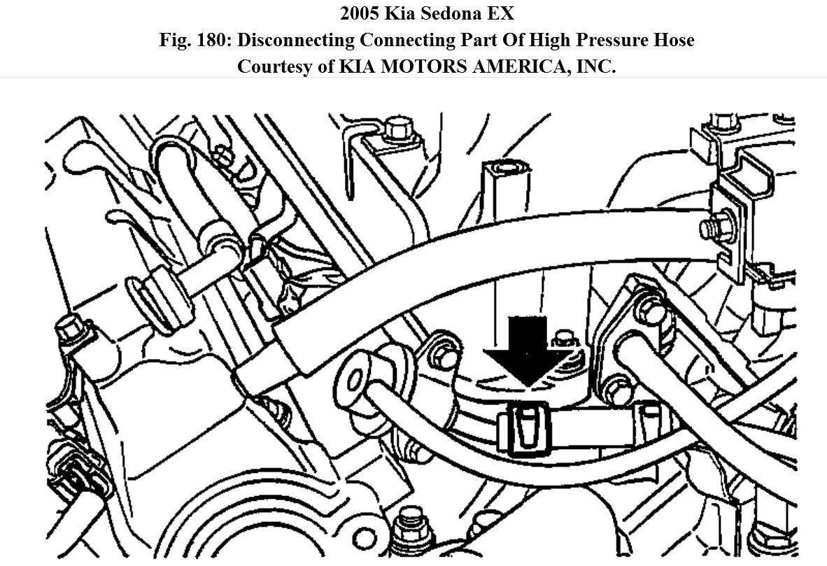 4. After reducing the pressure of fuel pipe line to prevent fuel overflow, disconnect the connecting part of the high pressure hose.