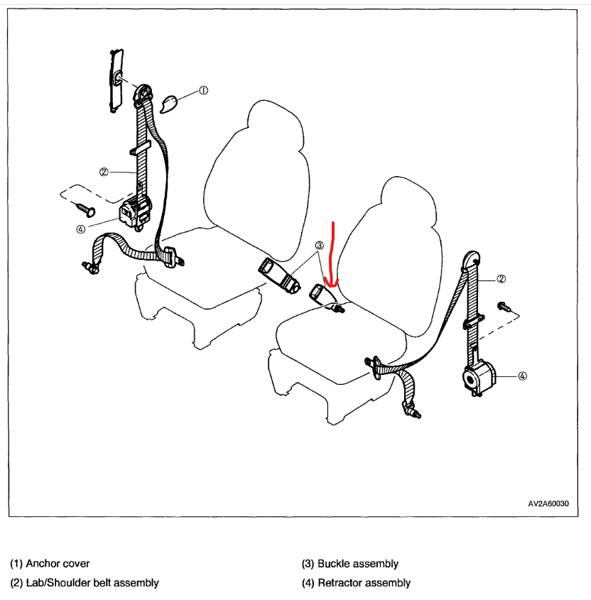 Fasten seat belt warning light staying on even when seat belt is connected @ each passenger seat.