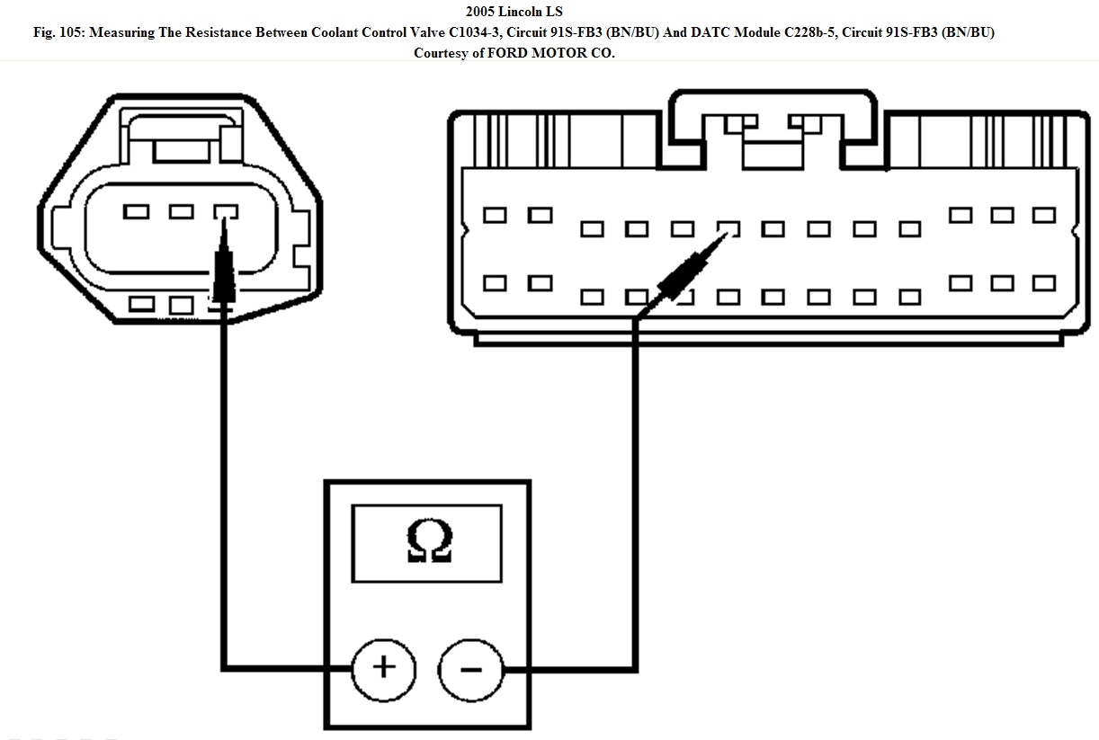 ? Coolant control valve C1034-3, circuit 91S-FB3 (BN/BU).