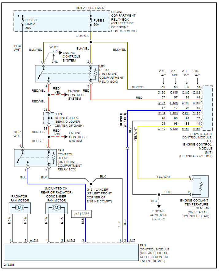 If it is not then your relay is shorted and needs to be replaced. If it is then we could have a temperature sensor issue. Basically if the temperature sensor is telling the PCM that the engine is hot when it is not then it will turn the fan on.