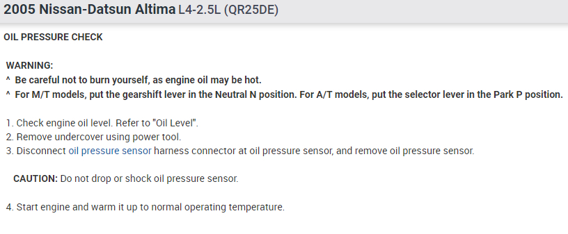 I have attached how to check the oil pressure as well as diagnostics of the pressure sensor. That way you will know if it is defective before replacing.