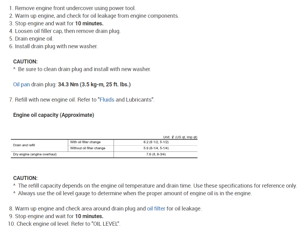 With oil filter change .................... 6 1/2 qt. (5 1/2 Imp qts., 6.2 L)