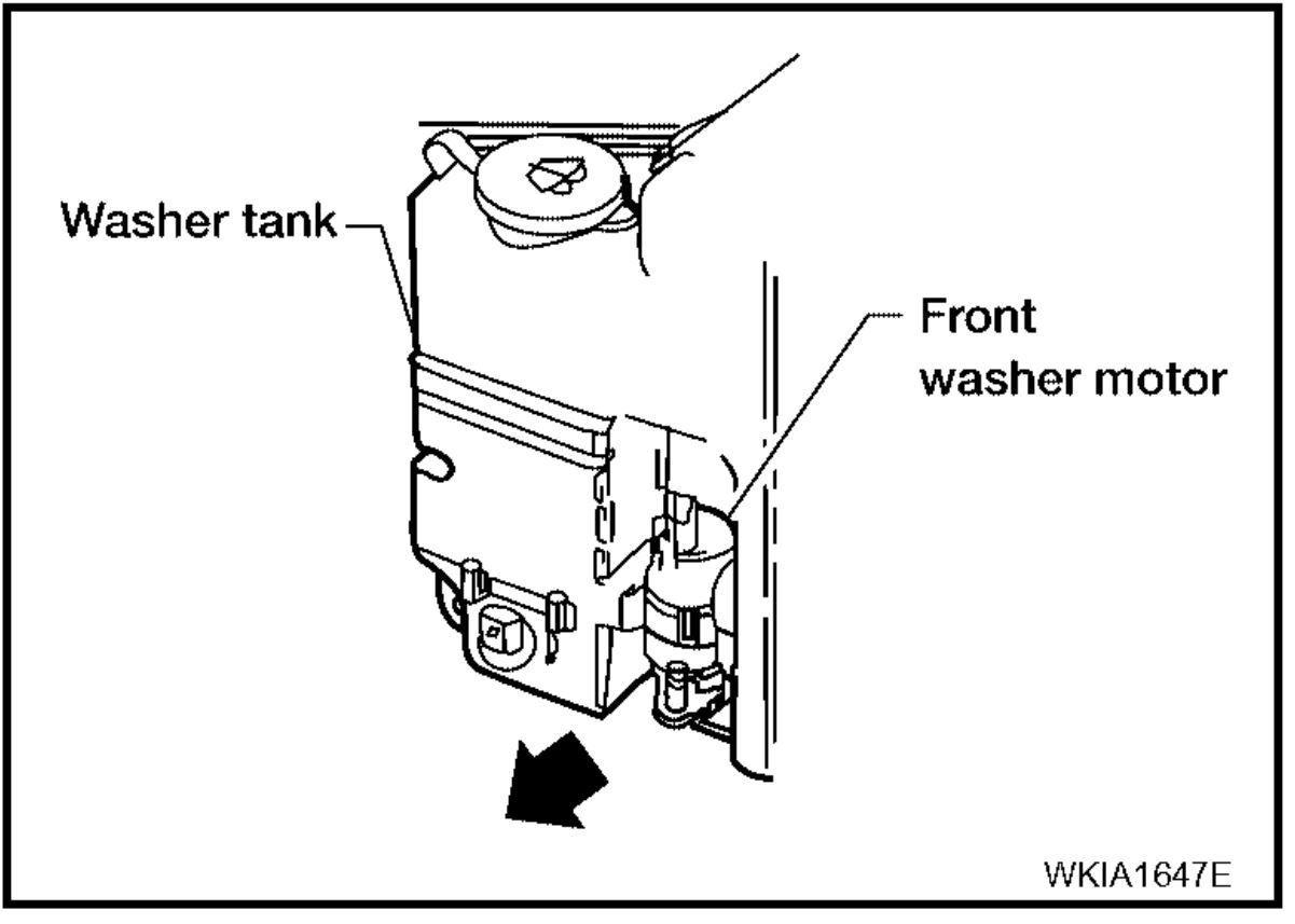 Windshield washer fluid pump not spraying when steering column lever switch activated; all fuses checked and good, wipers work great; replaced reservoir/pump/sensor unit thinking that was the problem myself but turned out to be a waste of $60+ for part at Nissan; problem still exists. This is on a 2005 Nissan Titan pickup
