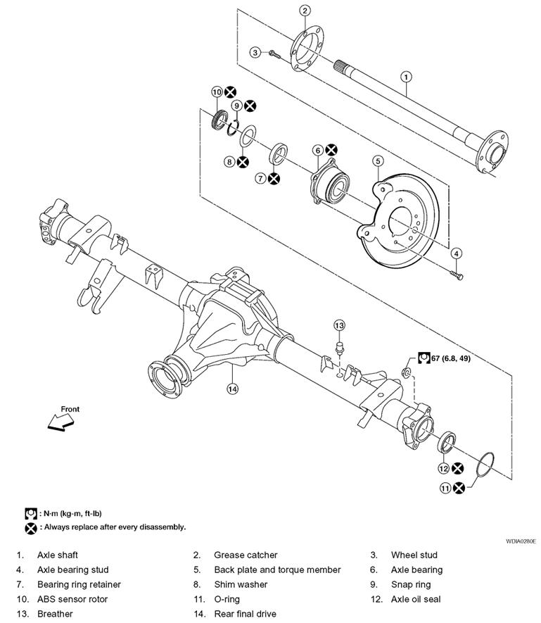 Do not reuse the axle oil seal once it is removed. Always install a new axle oil seal.