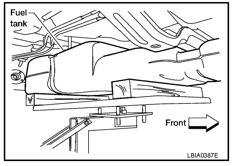 13. Lower the fuel tank using a suitable lift jack and remove the fuel tank.