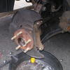 On the front left wheel, I have removed the tire, brake caliper, spindle nut, the brake rotor and the 4 screws that mount the hub bearing.