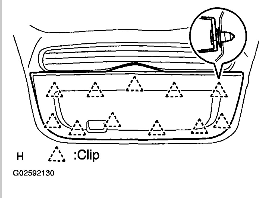 I need to know how to take the hatch back inside panel from the door/trunk. Since the back outside hatch assembly that carries the care emblem broke off. Nothing elecronic or mechanical broke just the panel as I was trying to open the hatch back. Help.