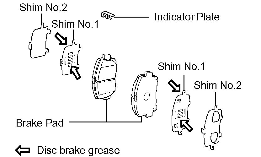 a. Apply disc brake grease to each anti-squeal shim No.1.