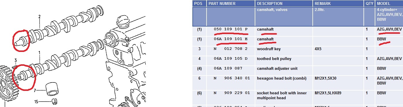I was just wondering if I was to replace a camshaft can I use another one that looks exactly the same as the one that I have on the car. The only difference is the engine code mine is BBW the other one AVG? I own a 2005 Jetta 2.0 GL
