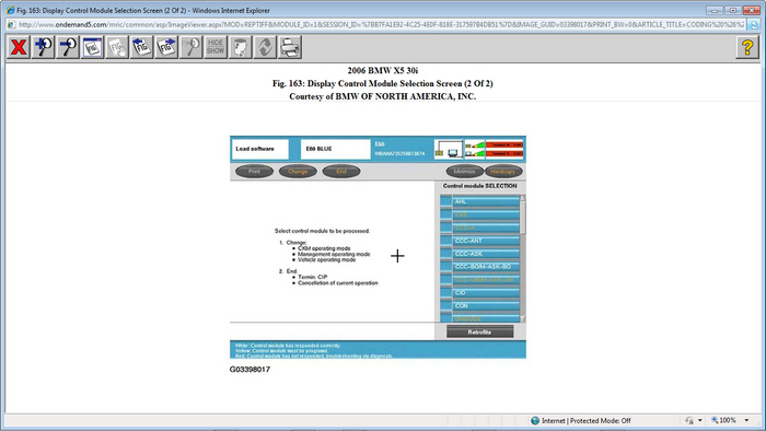 Fig. 163: Display Control Module Selection Screen (2 Of 2) Courtesy of BMW OF NORTH AMERICA, INC.