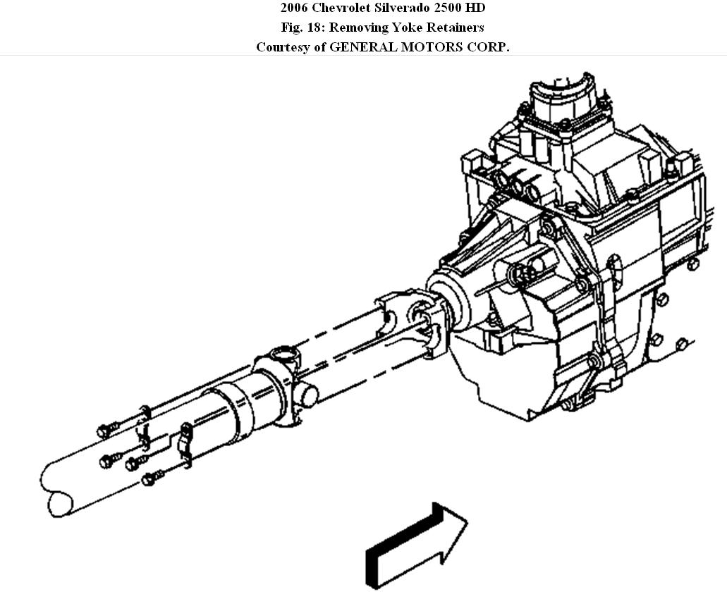 13. Remove the bolts and the yoke retainers from the transmission pinion yoke, w/ RPO MW3 or M74.