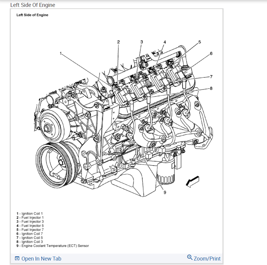 With an ohm meter at approx. 77 degrees it should have around 2796 ohms and goes down as temp gets hotter 212 degrees should be about 177 ohms. This is for a 5.3 eng or ls series
