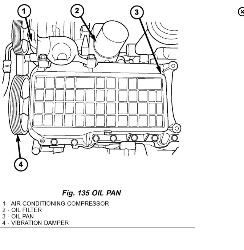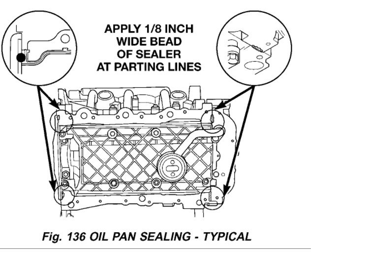 13) Remove oil pan fasteners. Remove oil pan (Fig. 135).