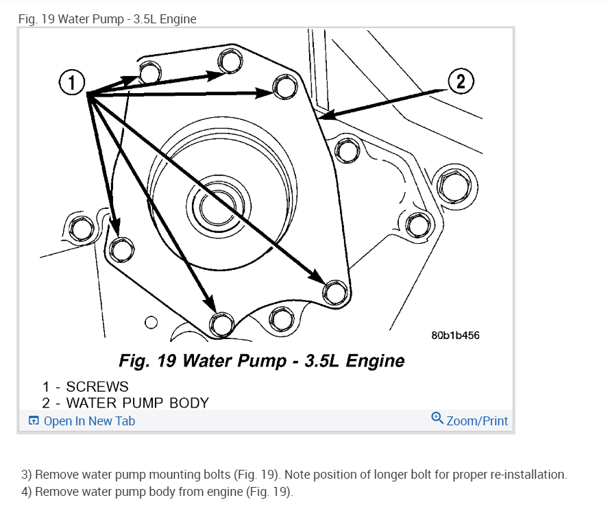 Here are the instructions on how to change out the water pump with the timing belt instructions as well since the timing belt needs to be undone or replaced when doing the job. Check out the diagrams (Below). Please let us know what happens.