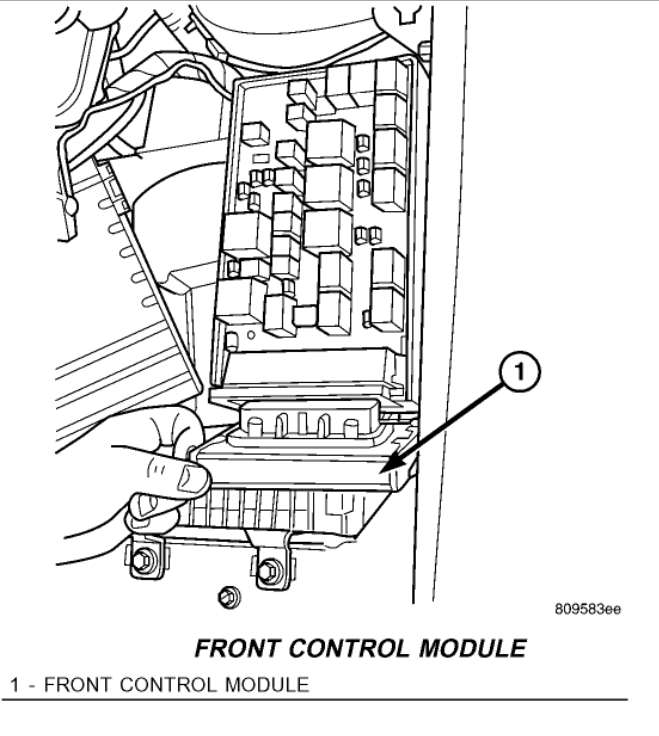 Pull the FCM straight from the PDC assembly to disconnect the electrical connector and remove the FCM from the vehicle.