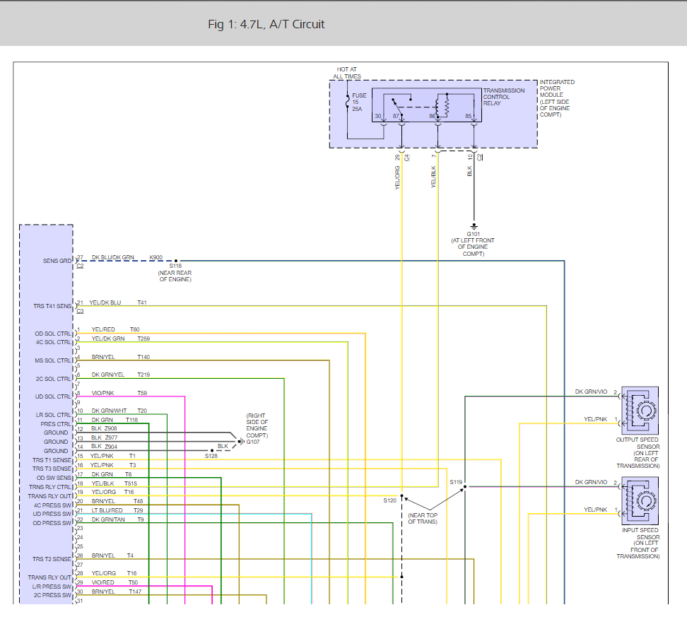 There is a temperature sensor in the transmission that sounds like it is going out. I not sure where it is because none of our information shows it location but it will have a Yellow with pink and a dark blue with dark green wire going to it. I would start by changing that. It will cause the transmissions to shift hard when the light is on becasue the computer is trying to cut down on heat by stopping the "slip". I have found a wiring diagram for you so you can see for yourself the color wires. (Below)