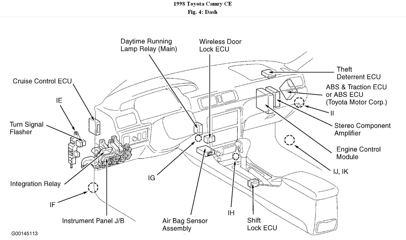 2. Access ECM behind glove box. Turn ignition on. Backprobing ECM connector, measure voltage between terminals No. 1 (Yellow wire) and No. 9 (Brown wire) at ECM E8 connector. See Fig. 3. If voltage is 4.5-5.5 volts, go to next step. If voltage is not 4.5-5.5 volts, replace ECM and retest.