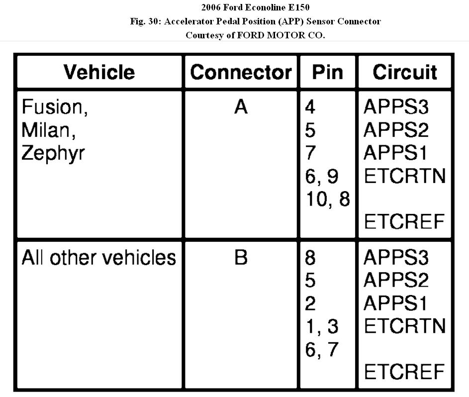( + ) APP Sensor Connector, Harness Side = ( - ) PCM Connector, Harness Side = APPS1