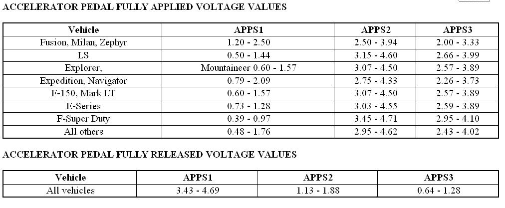 ACCELERATOR PEDAL FULLY RELEASED VOLTAGE VALUES
