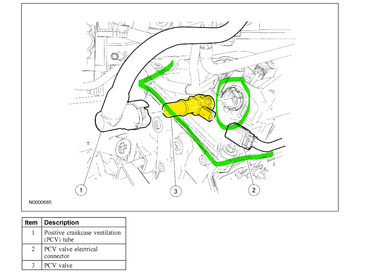 The last diagram has the part number for the PCV valve in case you need that as well. Because it has a heater element, that's something I would get from Ford, because an aftermarket part might not have the heater section of the valve.