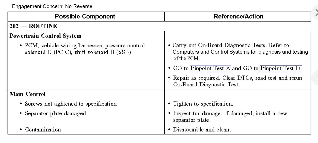 When I shift from park to reverse, reverse doesn't engage and just revs. Drive and low work fine.