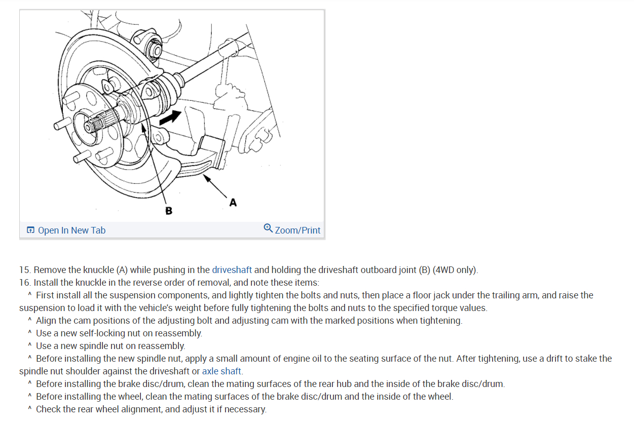 Rears are fairly easy. Remove the caliper and rotor. Remove the center cap and nut. I believe it is a 30mm nut. Remove the hub assembly and install the new one