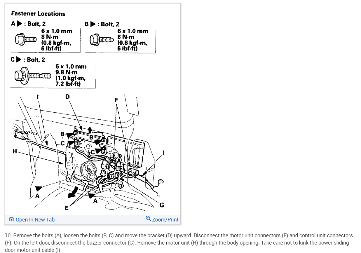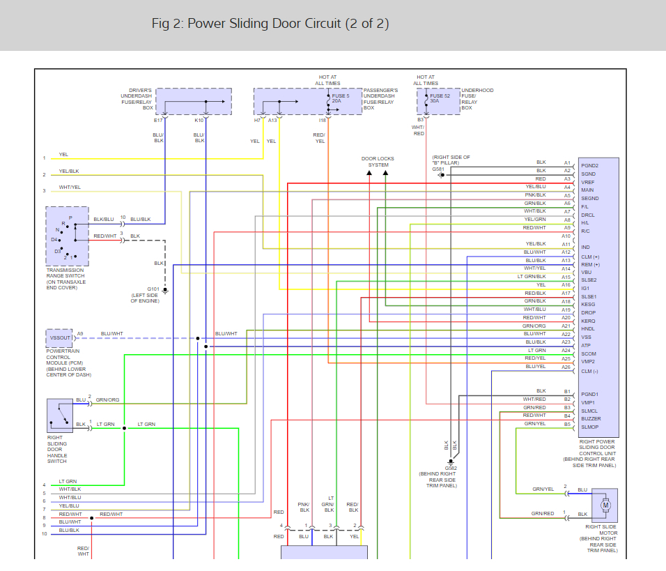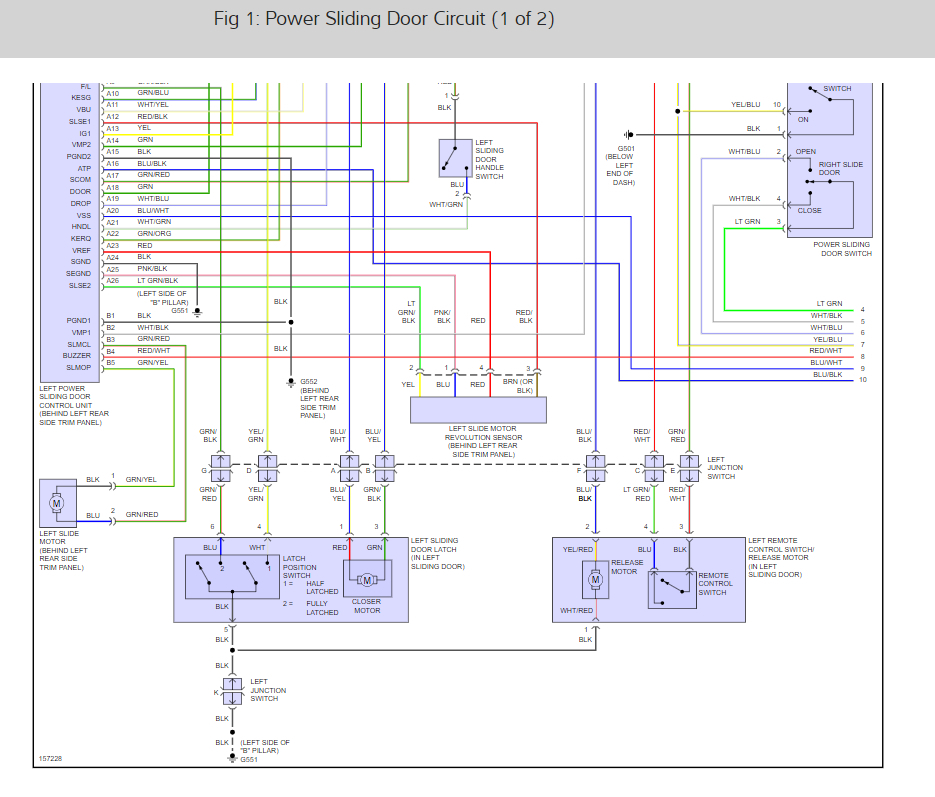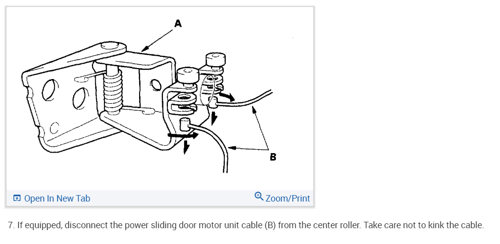 1. Erase the sliding door trouble codes by removing the # 13 (7.5 ) fuse from the passenger's under-dash fuse box for 10 seconds. Then put the fuse back in.
