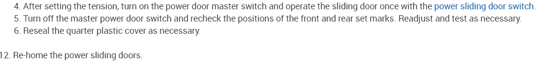 6. Try the door operation with the dashboard door switch, the remote and the door handles.