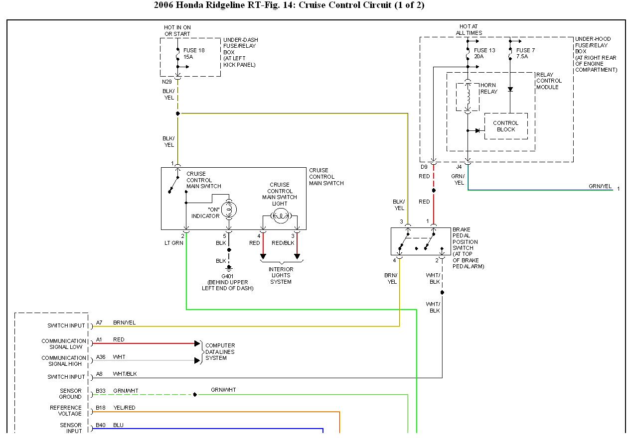 My 2006 Honda ridgeline cruise control will not engage. If I hold the (on) button in while pressing the activation button on the steering wheel the cruise control sets and holds until I release the on button. I dont see a bad fuse. I believe there is a relay problem. Where would I find the relay?