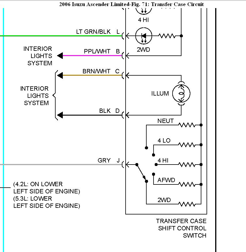 I have a 2006 isusu ascender broken 2-4wd switch. It's stuck in 4wheel low, anyway to get t 4 wheel auto either by hotwire or manual shift?
