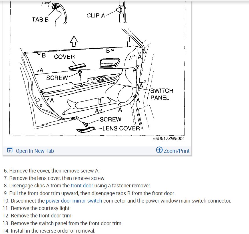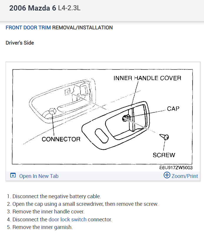 My dad has a Mazda 6 and recently the driver's door locked itself. It now won't open from the inside or the outside. All the other doors are fine. They will open, close and lock. He took the car to a Mazda dealership who has quoted £400 without labour. I have noticed in various chat rooms that this is quite a common problem with this particular make of car.