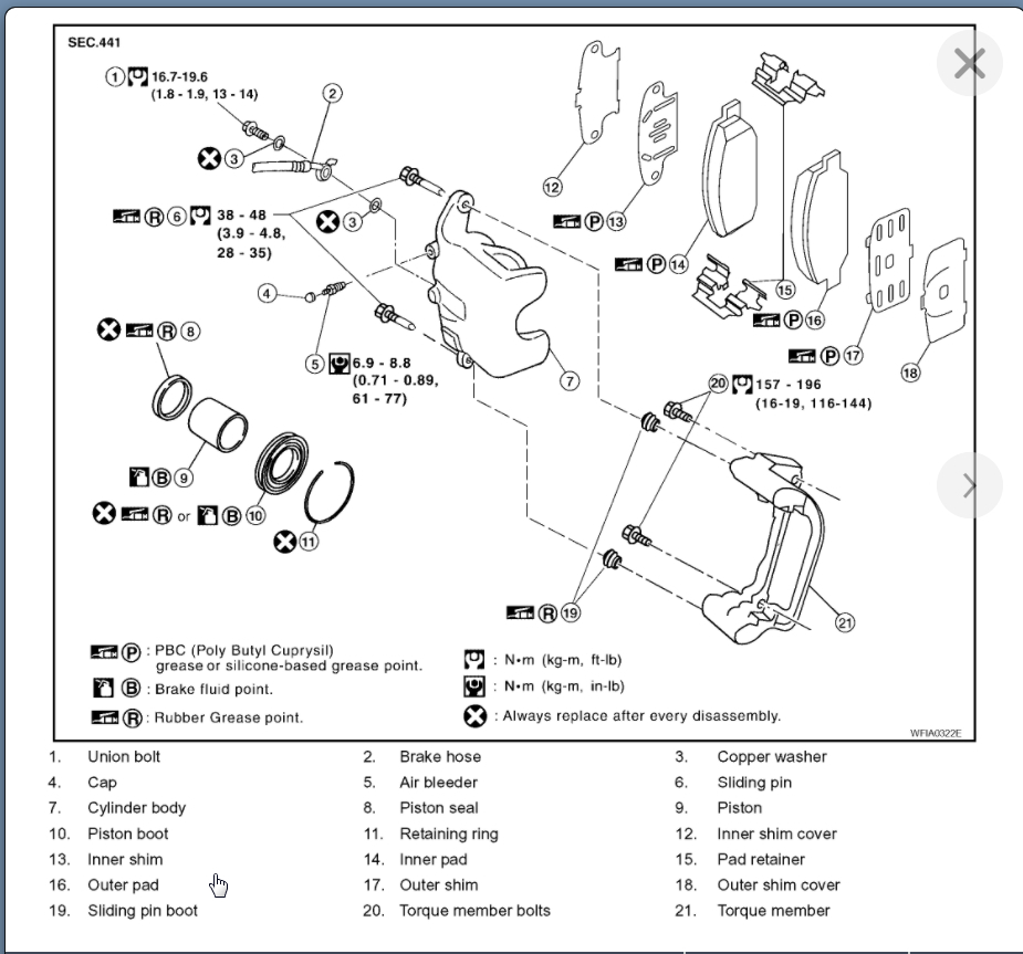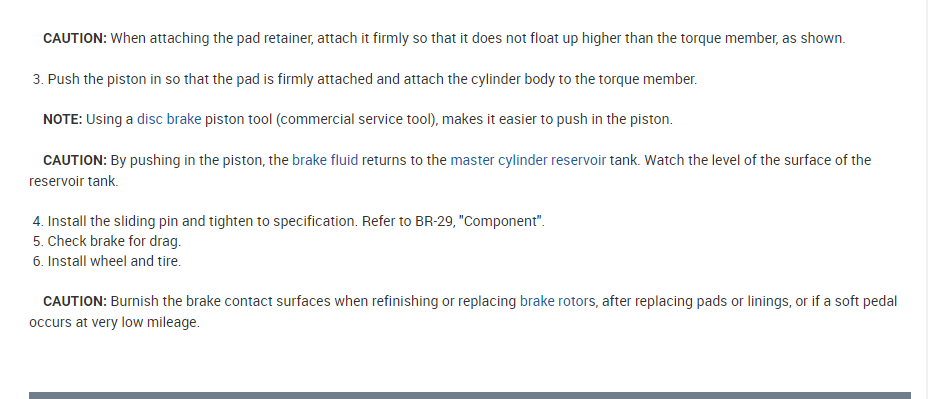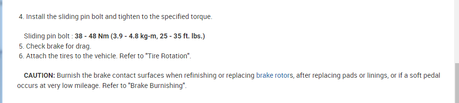7. Re-install the caliper, and install the two bolts.
