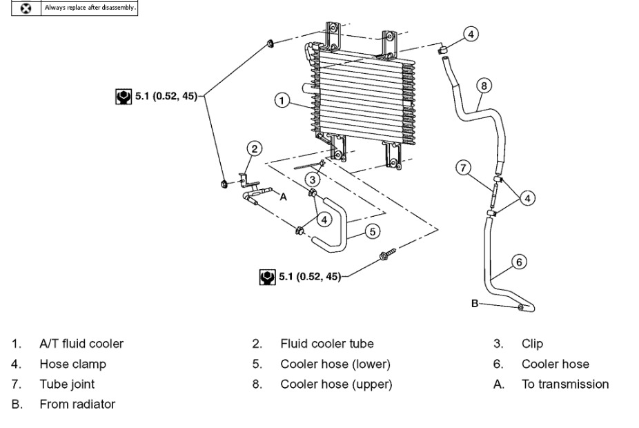 After my son put this vehicle in a ditch, there appears to be little external damage. However the vehicle will start but will not drive. On inspection there is a broken pipe that leads to a small radiator at the front end of the vehicle, there is oil/fluid leakage . I ASSUME this is the cooling system for the torque converter? If so, will I need a new radiator ( small one at the front) And can I refill with fluid myself or is it a garage job