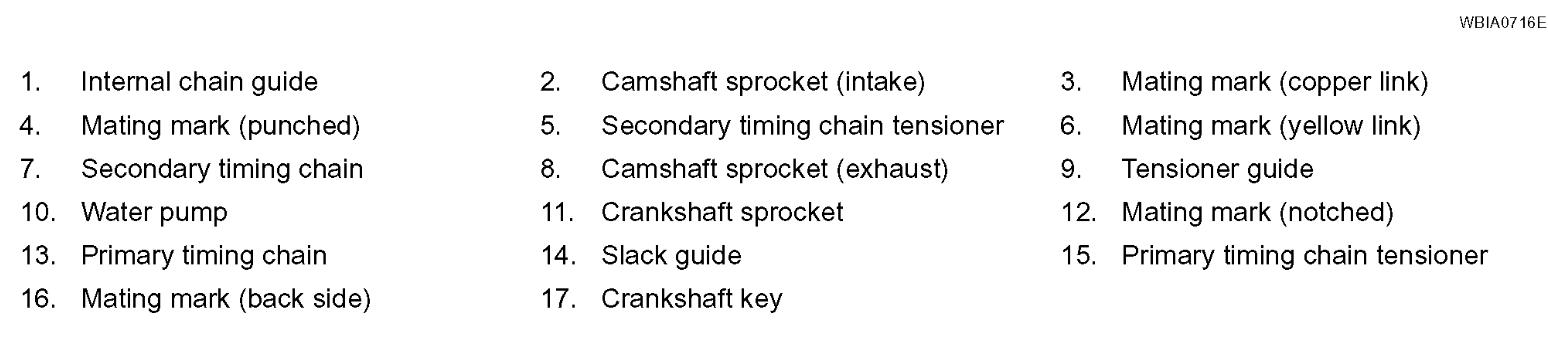 Primary timing chain position. I replaced waterpump and dropped bolt into cover. Had to take cover off and made a mess of things. If I align the crankshaft mating mark with the copper link I think the the upper camshaft sprokets are off. Can you please help? The chilton book is not very helpful this round like it is for my chevy. There is yellow paint marks everywhere, not sure how it lines up. Could I put a socket on and turn camshaft without messing things up worse? Thanks for your help.