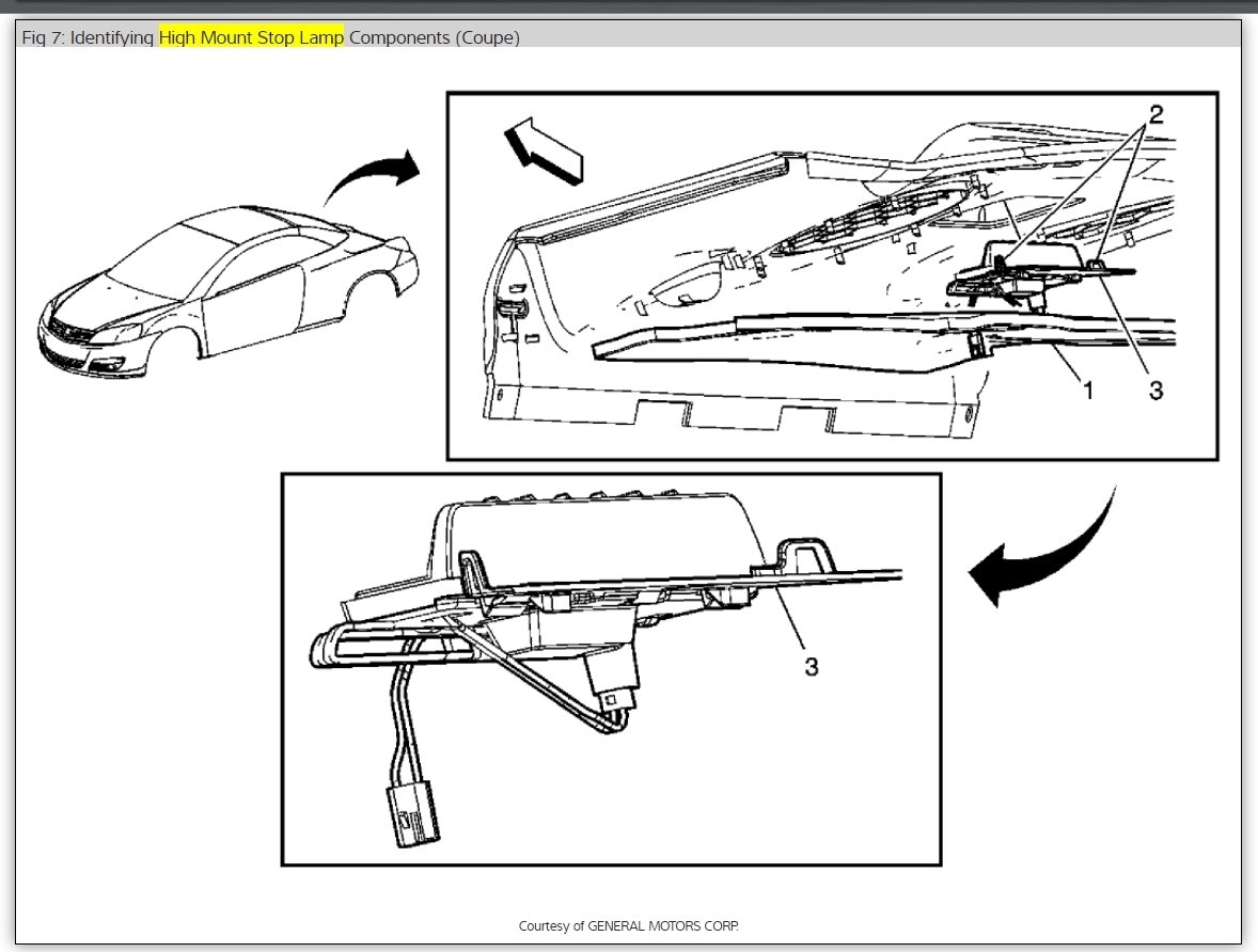 How do I replace the high mount lamp on my car? Its located inside the car's rear window. Cannot figure out how to take it off.