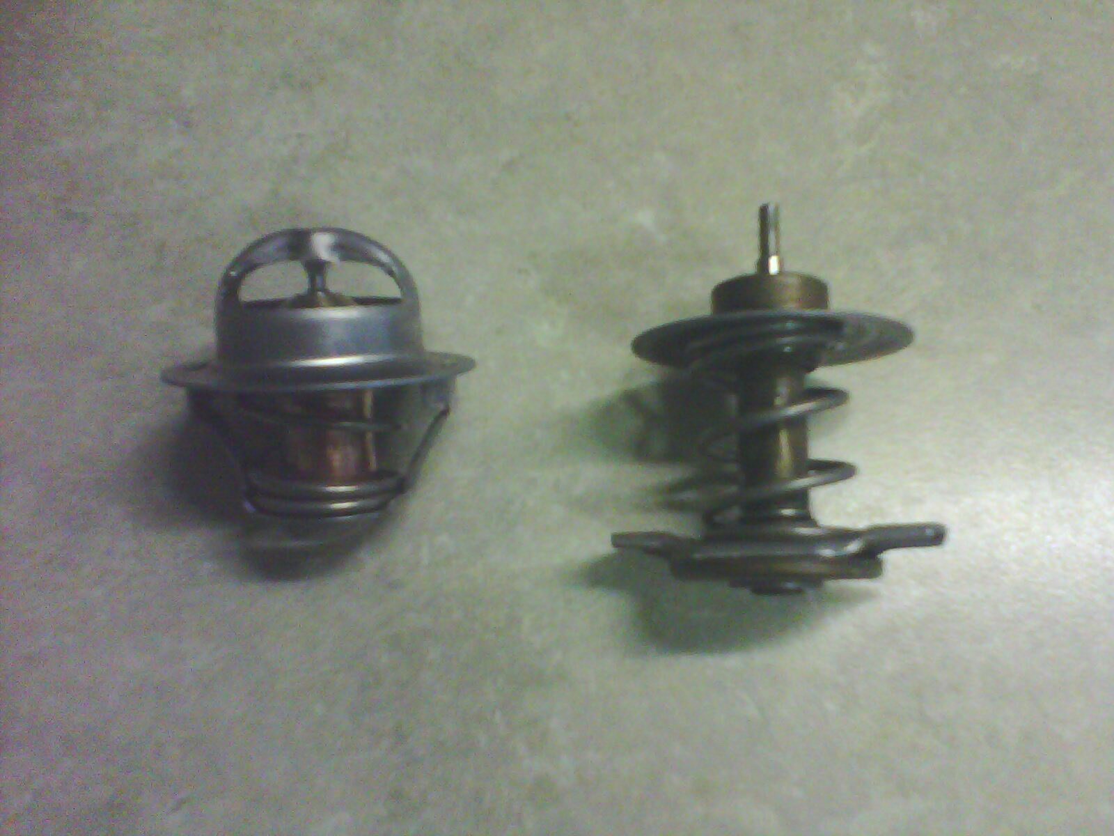 The thermostat that is called for in my 2006 Suzuki Forenza (station wagon) doesn't match the actual thermostat that's in the car. Did Suzuki use alternate parts? If so, what thermostat do I need to get? NAPA thought (by the design) the existing one is a model for a Cadillac or a Saturn. In the attached image, the thermostat on the left is supposed to be the replacement, the one on the right is what's in the car.