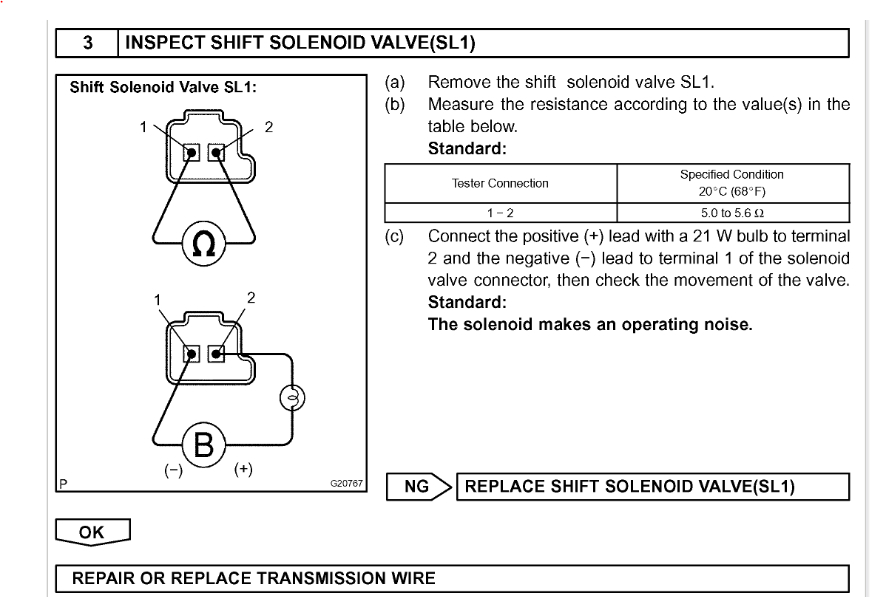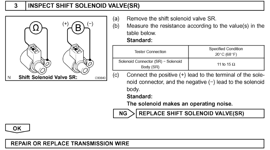 - Ck’d wiring resistance from the tranny plug to the valve body solenoid: 5.4 Ohms