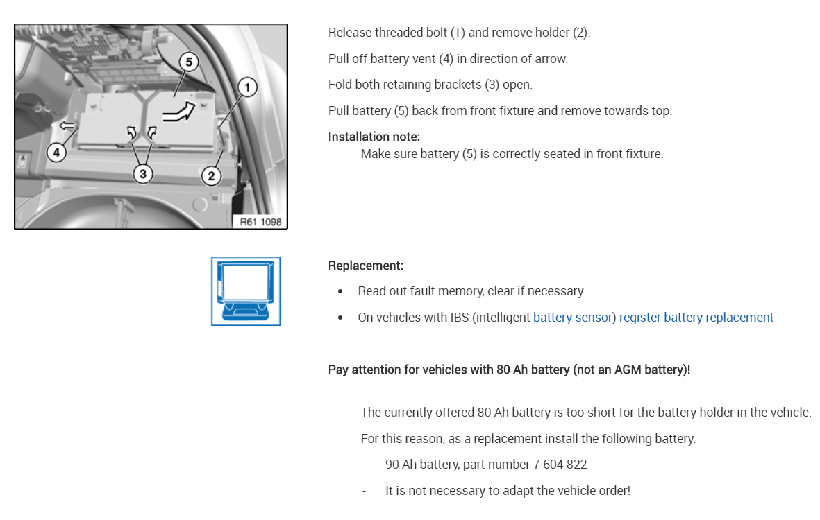 When installing a battery of a different size or a different battery type, this change in vehicle data must be programmed into the vehicle data in accordance with specifications.