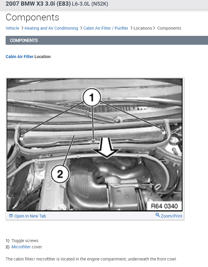 The cabin filter/ microfilter is located in the engine compartment, underneath the front cowl.