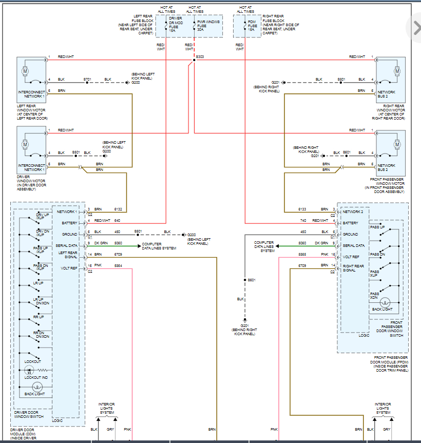 Neither passenger side window will roll down. Passenger side door locks and power mirror controls don’t work from either passenger or driver’s side controls or from buttons on key fob. Also passenger side heated seat does not work, which the control is located on passenger door. All fuses and relays are good. What would cause this issue? Thanks in advance.