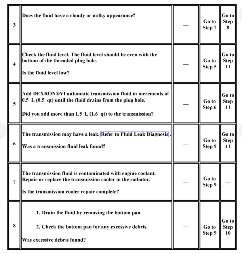Please see the info below on how to replace the pan and then check the fluid level. Please run through this material and let us know if you have questions and what you find.