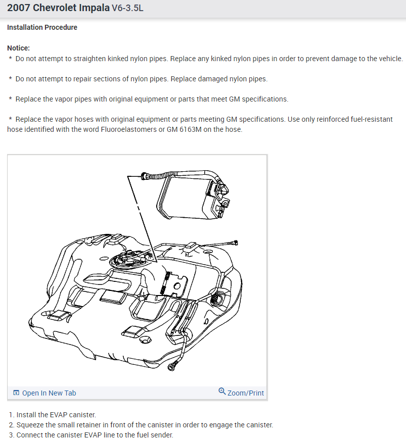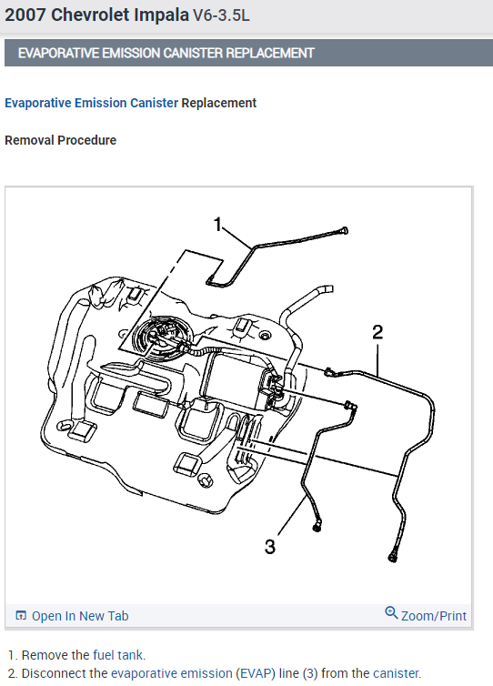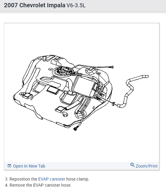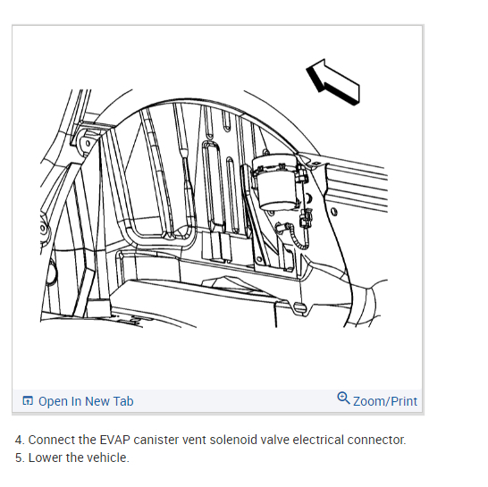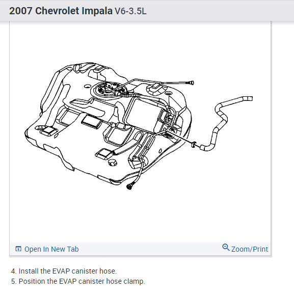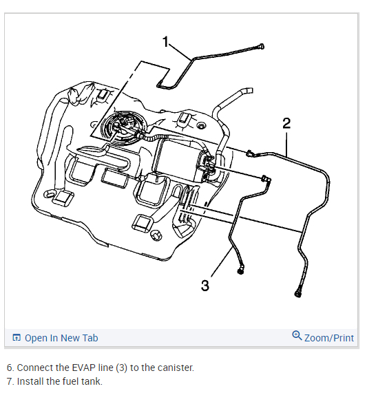 The EVSP canister is located on the top side of the fuel tank (see diagram).