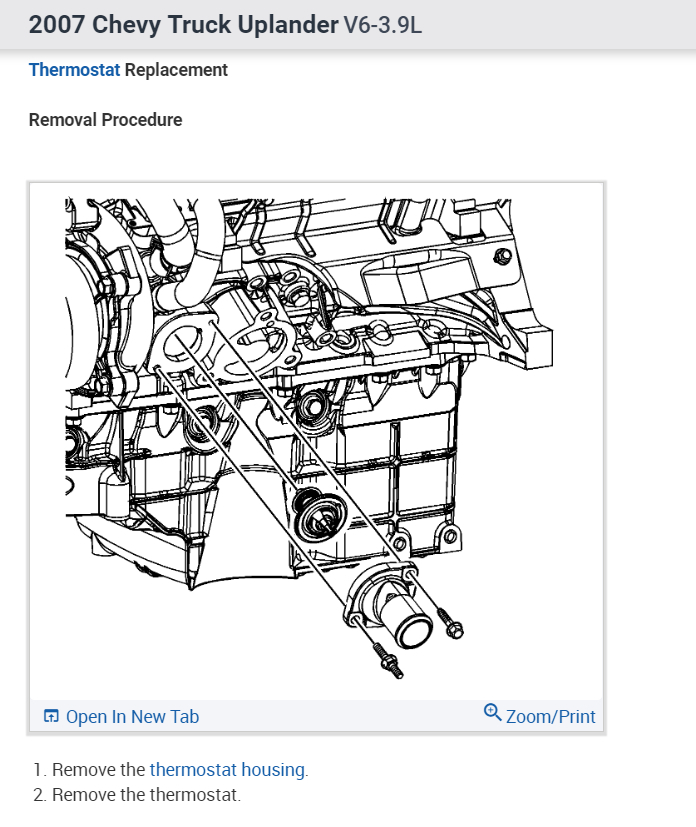 I'm changing the coolant and the thermostat in a 2007 Chevy Uplander 3.9 liter engine. The top hose dosn't attach to a typical thermostat housing. Where is the thermostat and how do I gain access to replace it?