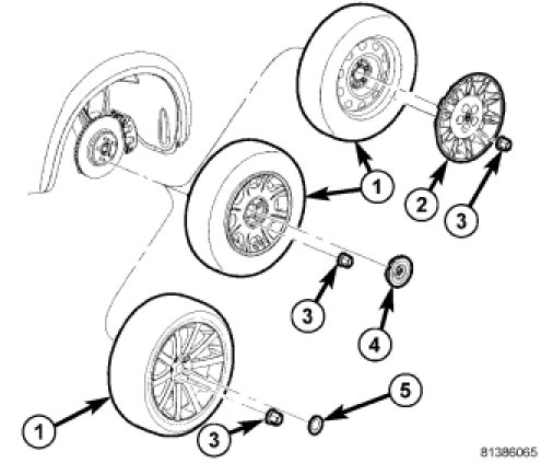 2. Remove wheel mounting nuts (3), then tire and wheel assembly (1).