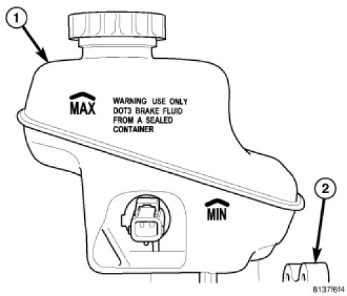 10. Check and adjust brake fluid level in reservoir (1) as necessary.