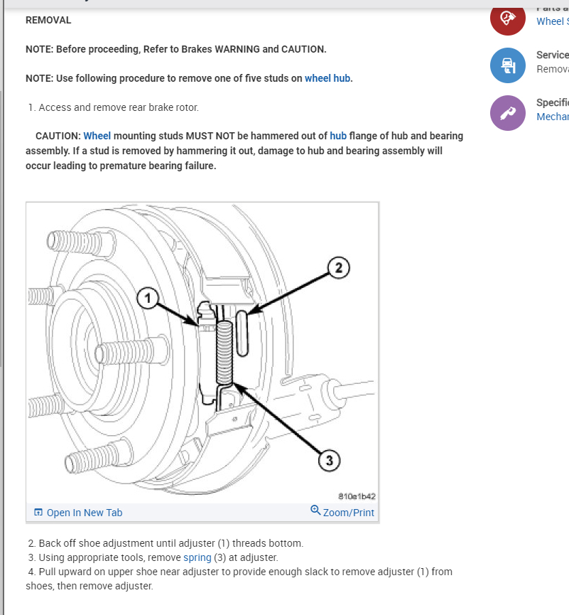 This is clearly a different vehicle, but it will help. Just be sure not to hammer the studs out on this vehicle as you will damage the bearing.